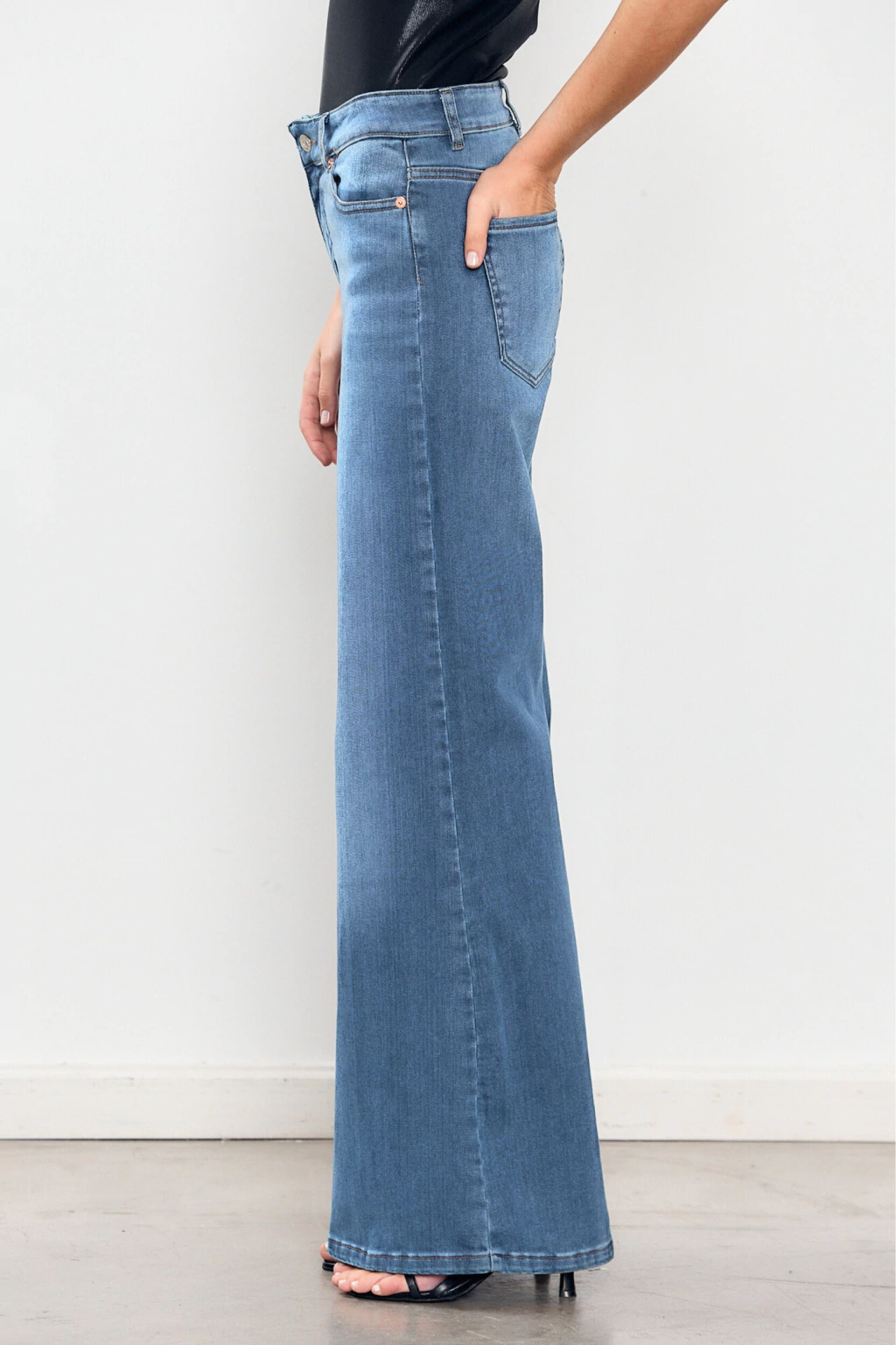 El Jean Sainz Mid Blue está confeccionado en denim azul de algodón con un poco de elastano que brinda comodidad sin perder estructura. De tiro medio y corte wide leg, este jean estiliza las piernas y acompaña la figura con una silueta favorecedora y atemporal.
