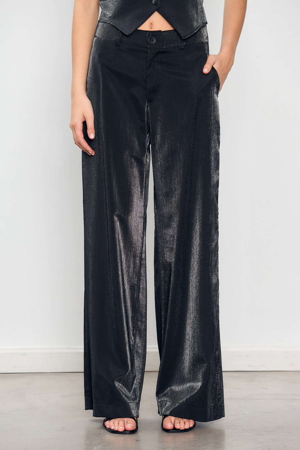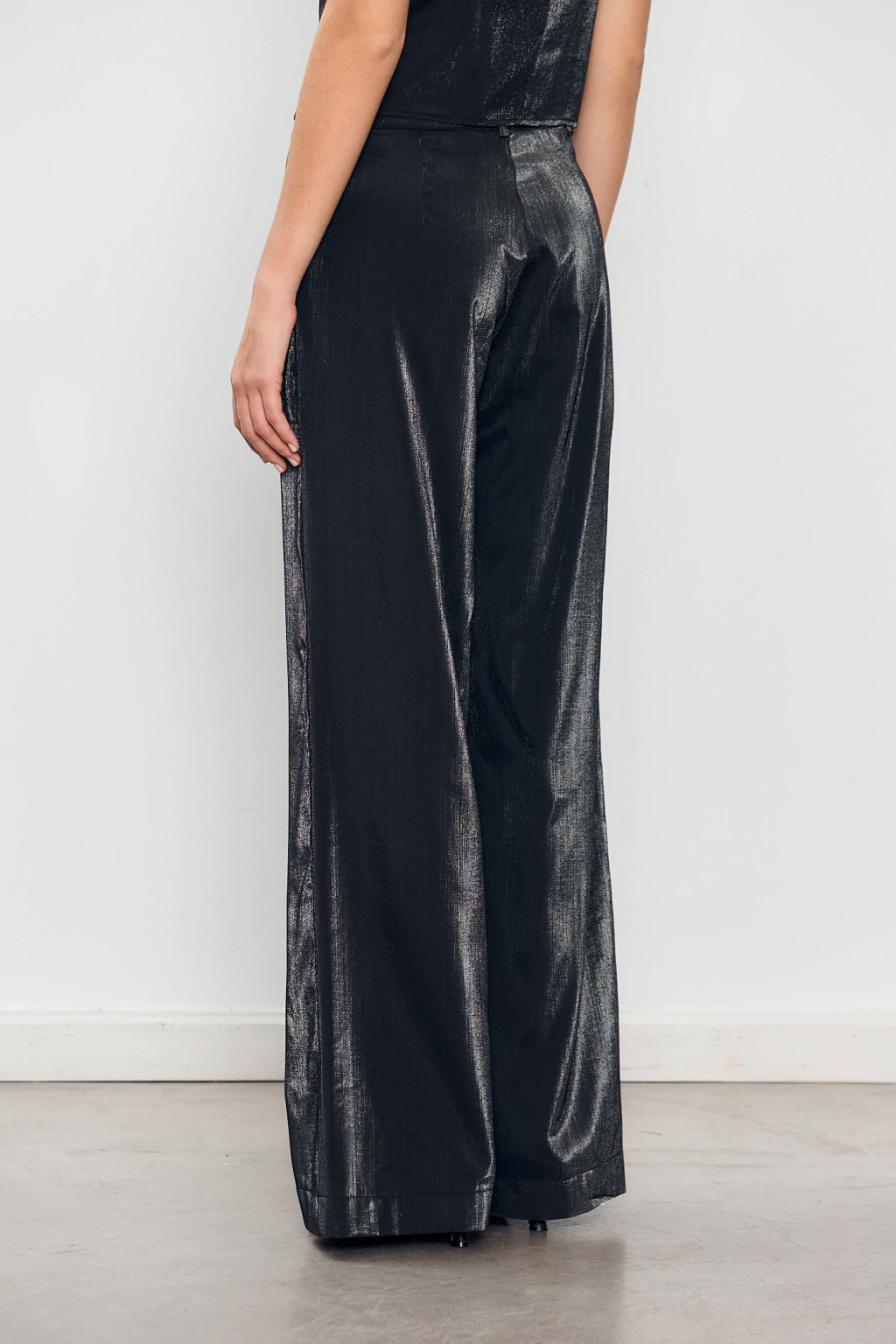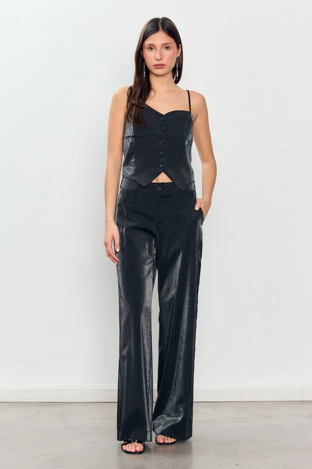Este modelo de pierna ancha y tiro medio ofrece una caída fluida y natural que estiliza sin marcar. Su diseño limpio, con bolsillos laterales y presillas en la cintura, lo convierte en un básico sofisticado de inspiración sastrera.