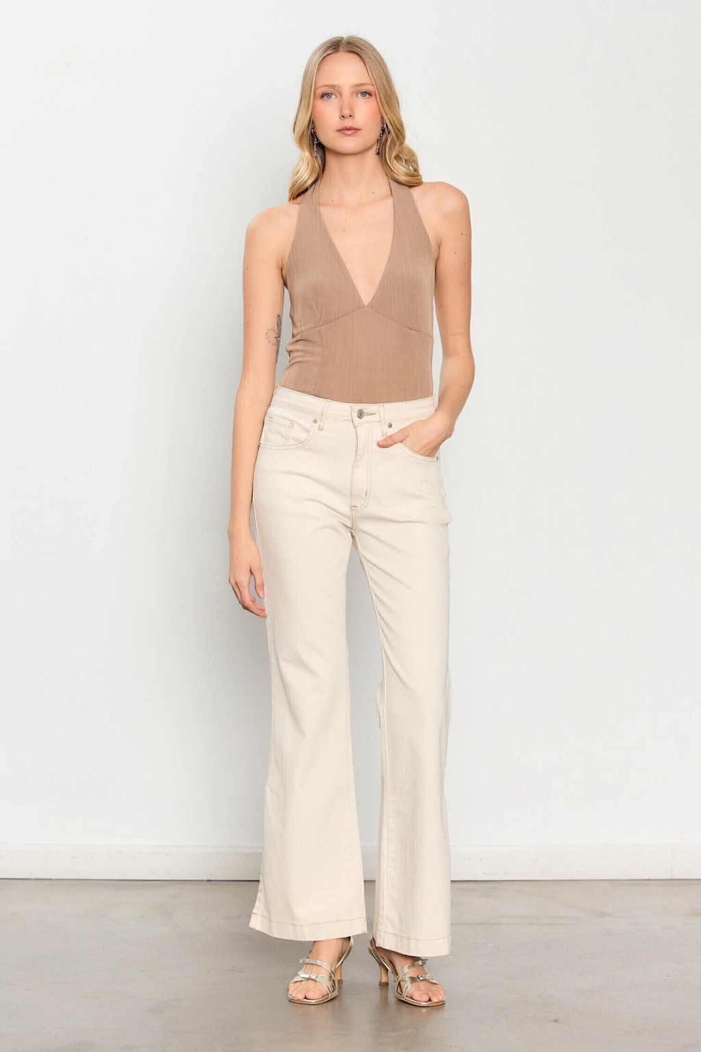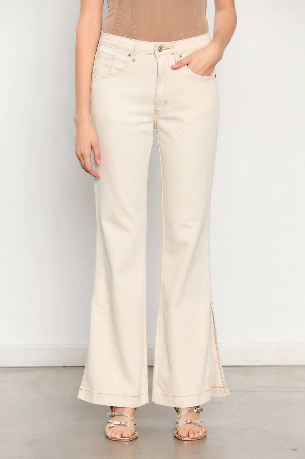 El Jean Roma Ecru es una reversión moderna del clásico bootcut, con tiro medio y piernas levemente acampanadas que estilizan y alargan visualmente la figura. Confeccionado en denim cascarilla elastizado en tono crudo, combina estructura y comodidad a la perfección.